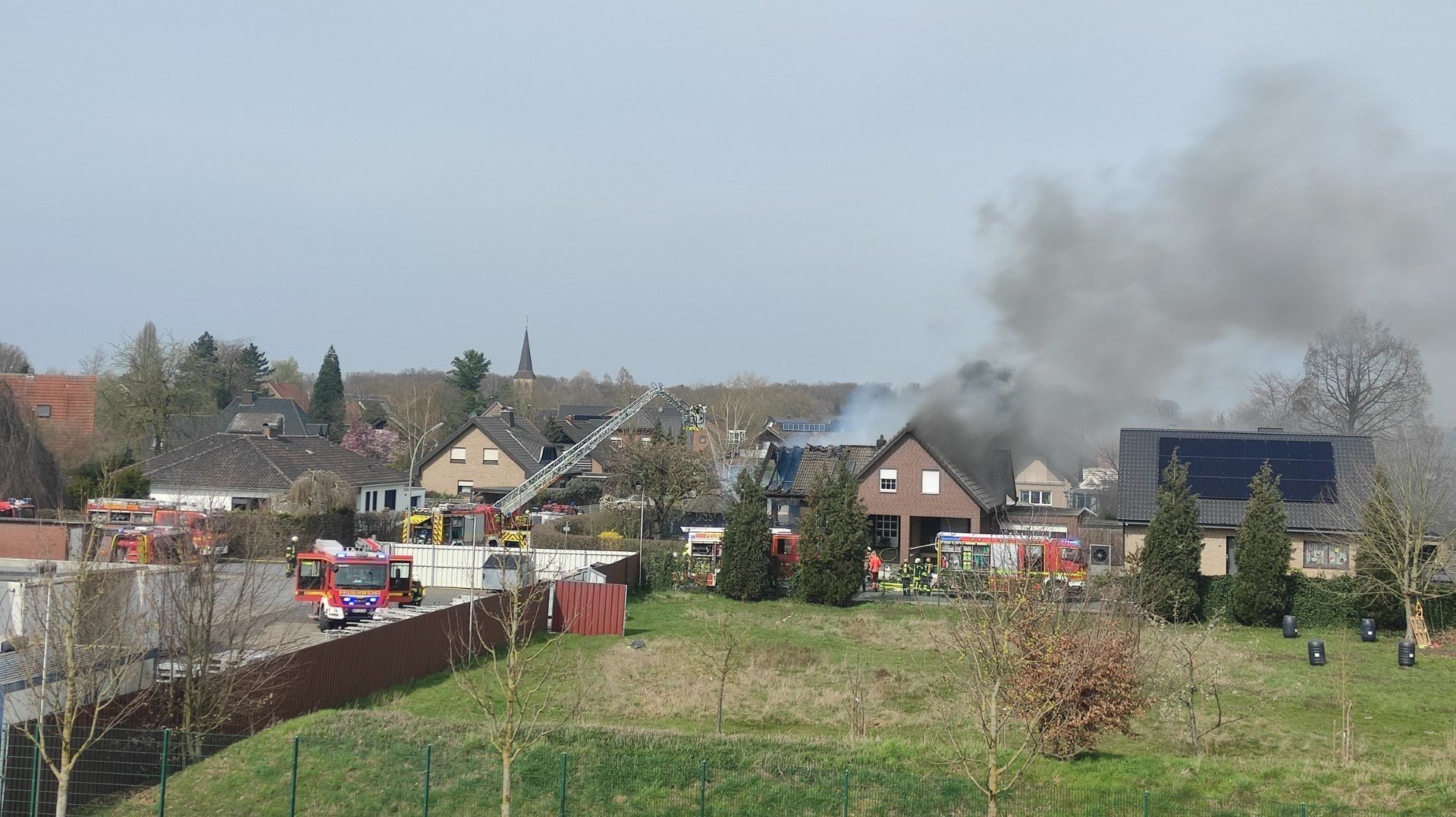 Vor Ort sind zwei Löschzüge aus Oelde und Lette, außerdem ist eine Drehleiter der Feuerwehr in Herzebrock-Clarholz.